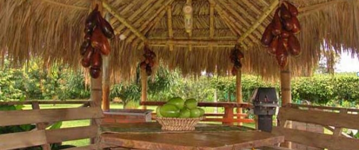 Está rodeada de amplias zonas verdes, hermosos jardínes y exóticos senderos con cultivos de heliconias y otras especies de la region.